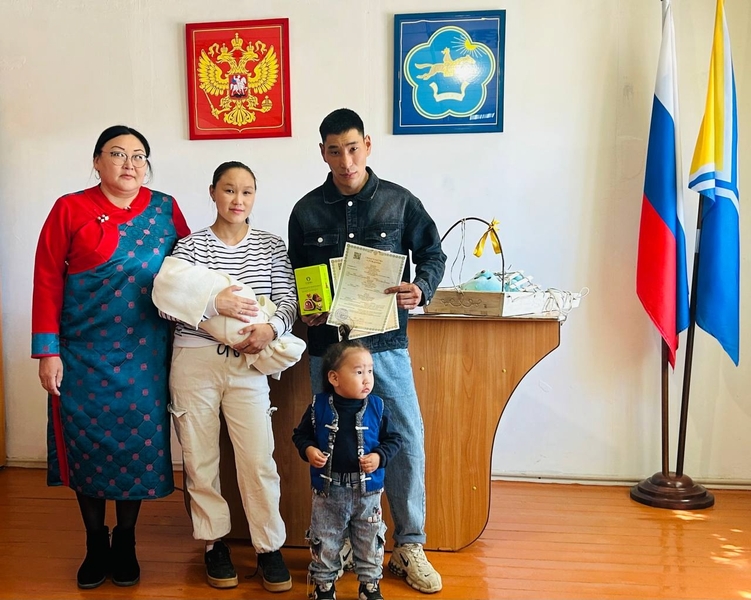 Руководитель Органа ЗАГС в Бай-Тайгинском кожууне Надежда Хертек торжественно вручила родителям первый официальный документ их малыша.